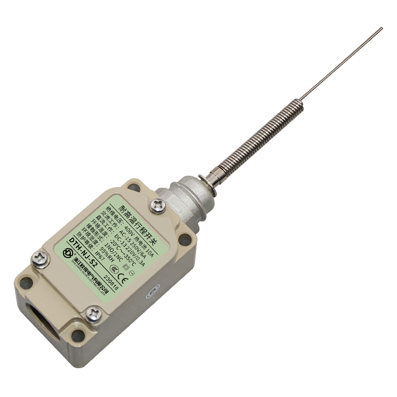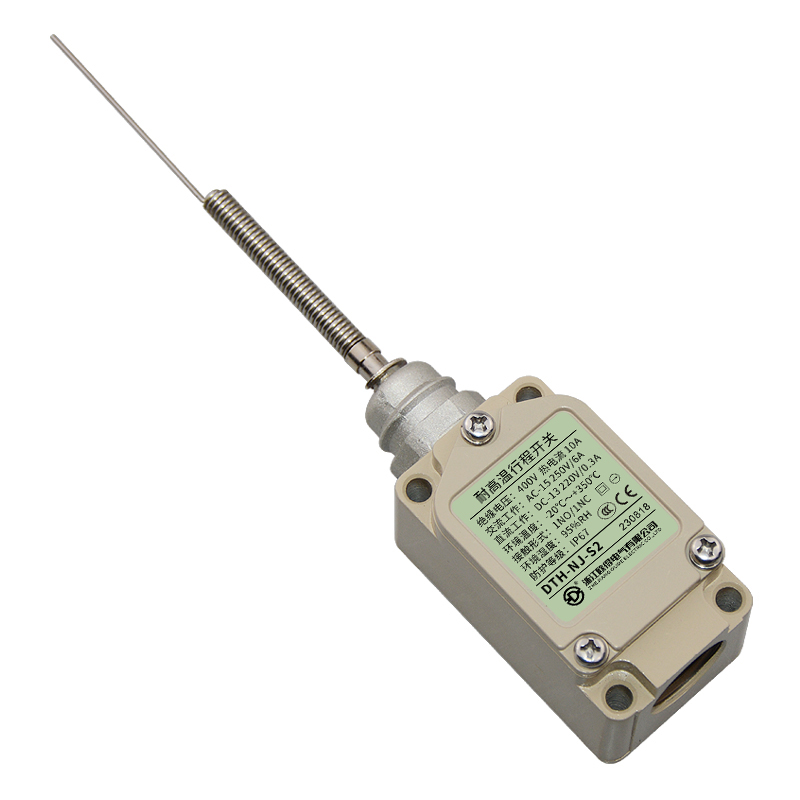 • DTH-NJ-S2耐高溫行程開關(guān),頂端鋼針·盤簧棒型,萬向式、通用直立型,長壽命2回路限位開關(guān)。適用于鋼鐵、焦化、電廠、紡織、醫(yī)療、化工、鋁材、塑料、玻璃、輪胎等高溫加工機(jī)械設(shè)備,作位移電路通斷信號檢測控制。