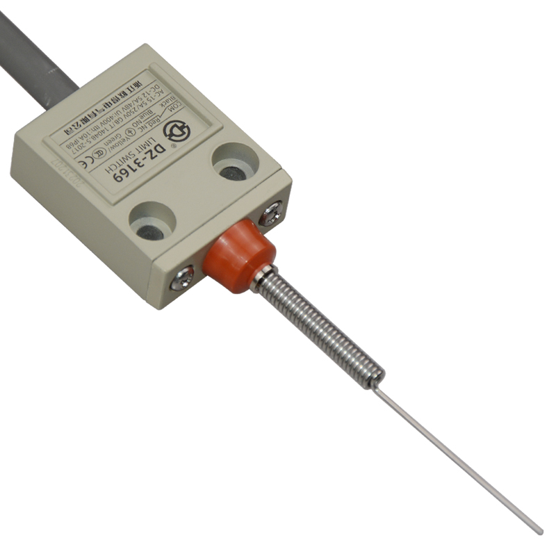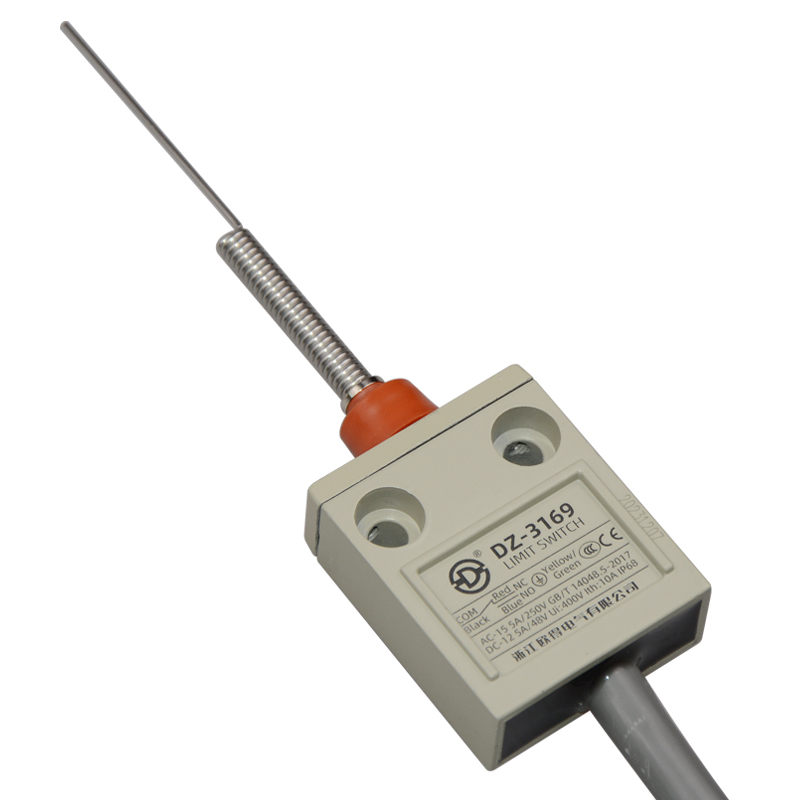 • DZ-3169防水行程開關(guān),針狀盤簧型,萬向式,通用直立型,小型、薄形、IP68防護(hù)等級,樹脂與耐油軟線融合牢固,高度密封性兼具的緊湊型限位開關(guān)。適用于積水、潮濕環(huán)境下的機械設(shè)備,作位移電路通斷信號檢測控制。
