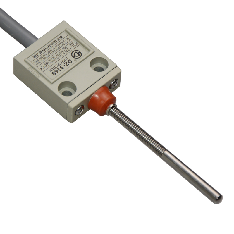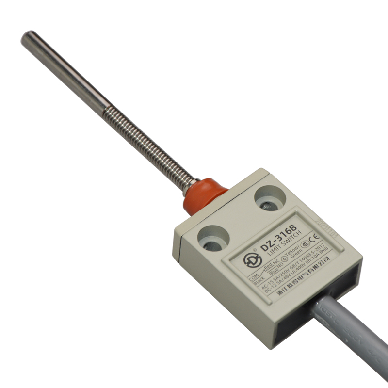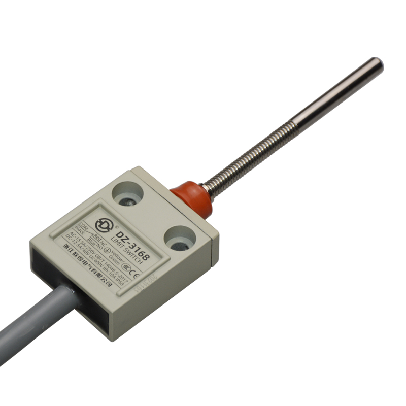 • DZ-3168防水行程開關(guān),棒式盤簧型,萬(wàn)向式,通用直立型,小型、薄形、IP68防護(hù)等級(jí),樹脂與耐油軟線融合牢固,高度密封性兼具的緊湊型限位開關(guān)。適用于積水、潮濕環(huán)境下的機(jī)械設(shè)備,作位移電路通斷信號(hào)檢測(cè)控制。