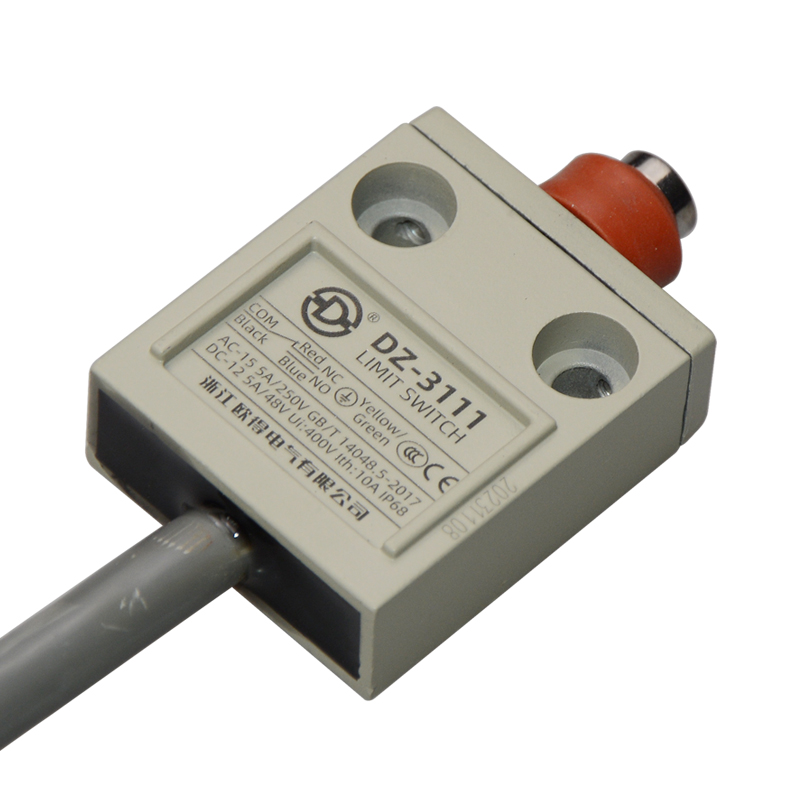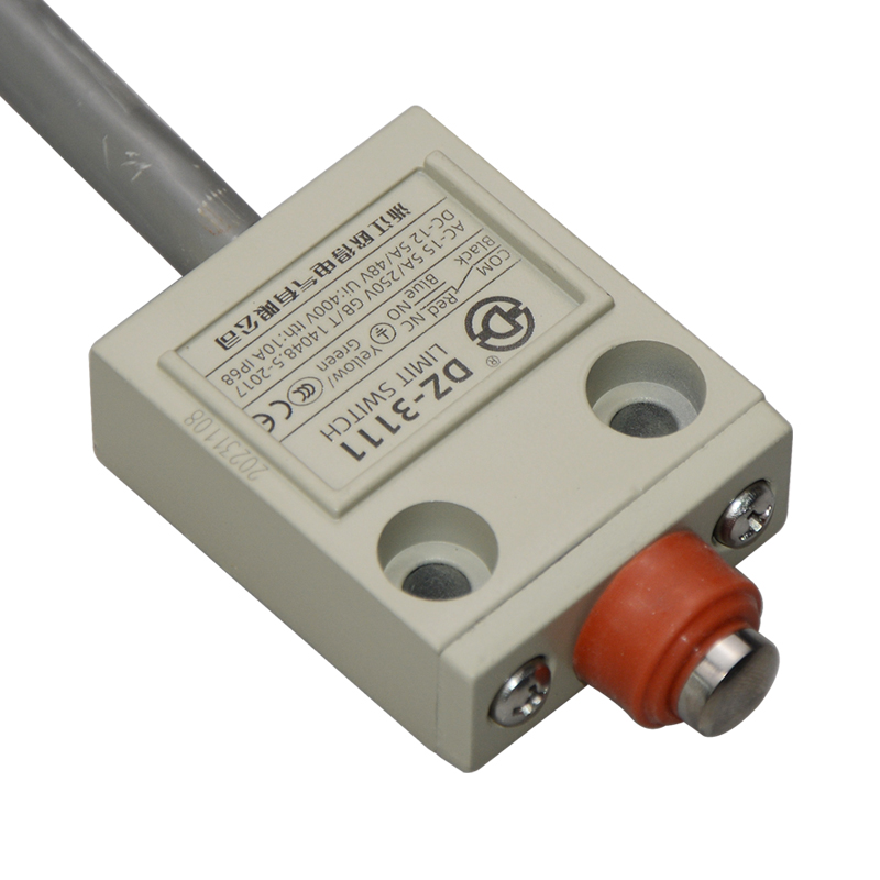 • DZ-3111防水行程開關(guān),密封式針狀柱塞型,通用直立型,小型、薄形、IP68防護(hù)等級,樹脂與耐油軟線融合牢固,高度密封性兼具的緊湊型限位開關(guān)。適用于積水、潮濕環(huán)境下的機(jī)械設(shè)備,作位移電路通斷信號檢測控制。