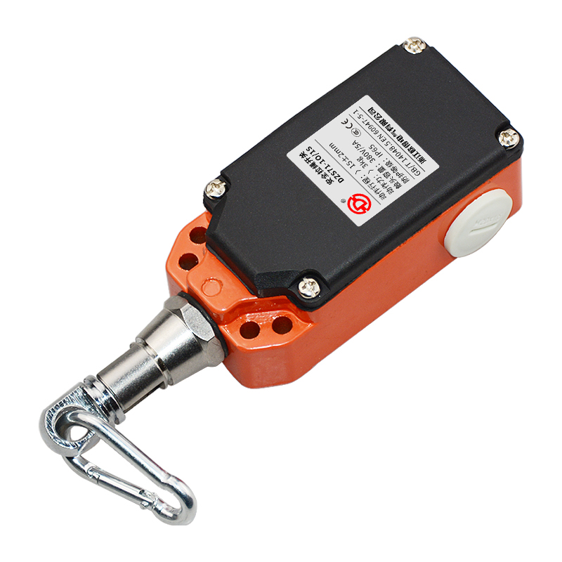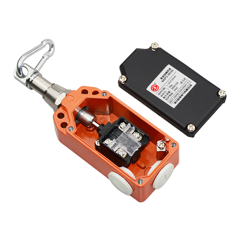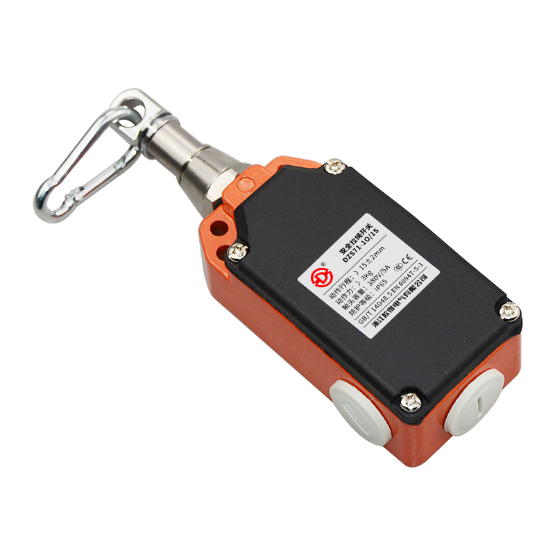 • DZS71-1O/1S安全拉繩開關,拉動式、自復位型,2回路(1常開1常閉),金屬殼體、塑膠蓋板。適用于流水線、輸送帶、高空作業(yè)車等機械設備位移信號控制,保護操作員不受機器傷害。額定絕緣電壓400伏,發(fā)熱電流10安培,工作電壓交流380伏、電流0.8安培,直流220伏、電流0.15安培,防護等級IP65,戶外使用請注意防水措施。