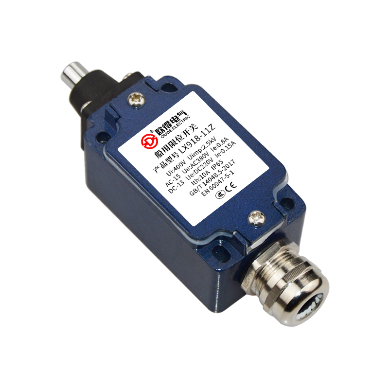 • LX918-11Z船用限位開關(guān) 柱塞式 歐得行程開關(guān)。額定絕緣電壓400伏,發(fā)熱電流10安培,工作電壓電流交流380伏、0.8安培,直流220伏、0.15安培,防護(hù)等級IP65。適用于船舶、海洋平臺、港口碼頭等各種機(jī)械設(shè)備在電器設(shè)備控制回路中能限制行程的限位開關(guān)。