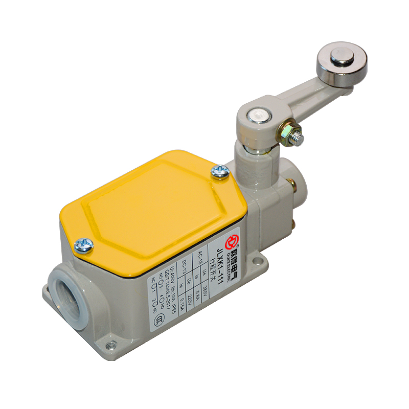 • JLXK1-111行程開關,滾輪擺桿式,2回路,1常開1常閉,歐得限位開關。該行程開關適用于絕緣電壓400伏、發(fā)熱電流10安培、交流工作電壓380伏電流0.8安培、直流工作電壓220伏電流0.15安培的控制電路中,將機械信號轉變?yōu)殡姎庑盘枺脕砜刂茩C械運動的行程、速度或程序控制。