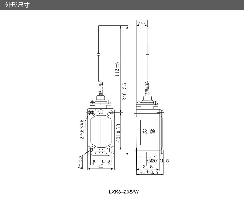 • LXK3-20S/W行程開關(guān),針式盤簧萬向型,2回路,1常開1常閉,歐得限位開關(guān)。該行程開關(guān)適用于絕緣電壓400伏、發(fā)熱電流10安培、交流工作電壓380伏電流0.8安培、直流工作電壓220伏電流0.15安培的控制電路中,將機(jī)械信號(hào)轉(zhuǎn)變?yōu)殡姎庑盘?hào),用來控制機(jī)械運(yùn)動(dòng)的行程、速度或程序控制。